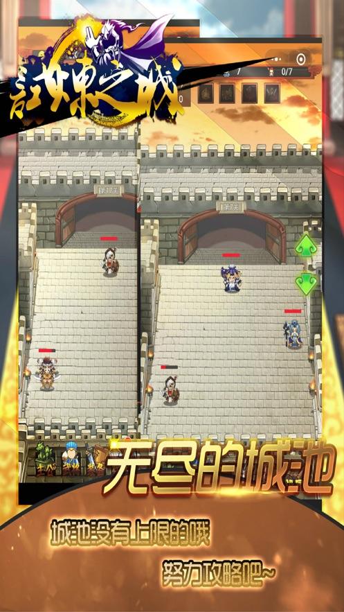 试炼之城游戏是一款三国历史题材的战棋类的策略即时战斗游戏。在这款游戏中,你将成为一名主公,通过不断的招募各种强力的三国时期武将谋士和训练各种各样的兵种来增强自己的军队的实力。简单方便的游戏操作让这款游戏能够适合更多的不同年龄段的玩家,并且可以让你是用一根手指就能完全操作游戏。