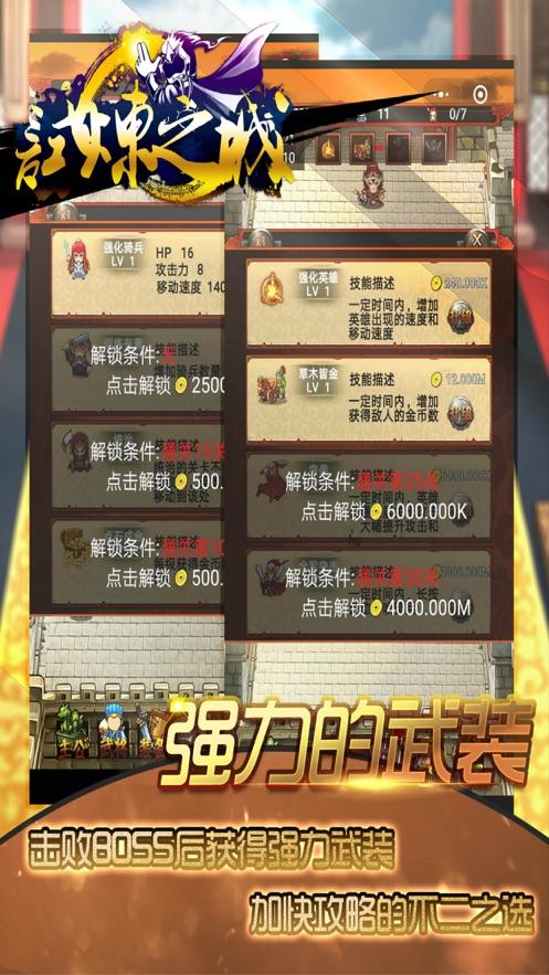 通关一定的关卡之后才能够解锁更多的技能、兵种和英雄,想尽一切办法增强你的实力。