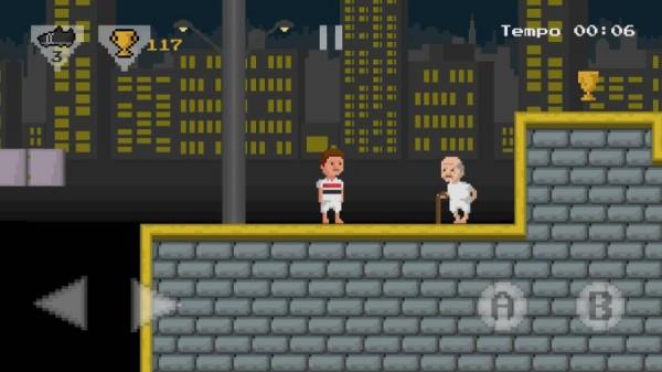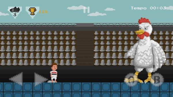 1、玩家需要操控足球运动员开始冒险之旅,操作很简单,类似马里奥的横版闯关游戏,不过更加的简单;