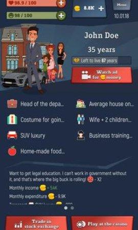 从贫民到大亨奇妙人生游戏是一款英文版本的模拟经营系游戏,精致的游戏画面和充实内容打造,玩家需要想办法来赚钱来购买你想要的东西,超多的游戏模式,丰富的游戏关卡,带来一定的游戏挑战难度,喜欢的玩家不要错过了!