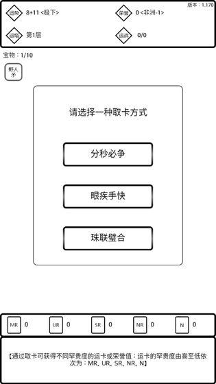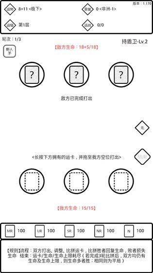 1、这款游戏是一款文字向的策略玩法的手游,通过抽卡来决定你的欧气值;