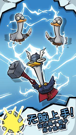 拖动两个相同的鸭子到一起,就能合体成为更高等级的鸭战士!