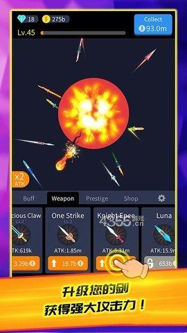 点击伤害无限升级,剑器伤害无限提升,转生获得更强武器。休闲放置、益智放松、无限升级 的飞刀游戏。在您最喜欢的节目播放间隙,上手也是很快的哦。
