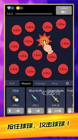 放置利刃(idle knife)是一款点击飞刀射击类游戏。每个关卡都有大量的球球积分等待玩家点击射击。非常休闲无脑的操作,尽情的放松自己,一定数量的飞刀还可解锁超级激光,一键清屏,非常痛快。玩家碎片时间就可打开来娱乐一下,轻松又解压,让你不必无事可做,苦苦等待。快来下载试玩吧。