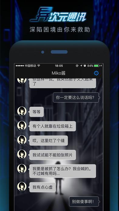 《异次元通讯3》是一款体验新颖的文字AVG游戏,采用模拟手机通讯的方式达成玩家和故事主角的实时互动。故事主角Miko无意中通过聊天软件和玩家相遇,在逃亡过程中只能跟玩家联系。玩家在与Miko的交流过程中逐步了解事件、协助解谜,熟悉Miko的性格,深入Miko的世界。和千篇一律的美少女角色不同的是,Miko有着鲜明个性和独立人格,主人公需要像对待朋友一样,理解和尊重Miko的意愿,和她共同经历、共同成长。