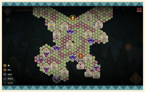 游戏将Roguepke、策略战棋和卡牌收集构筑等元素融合在一起,打造出全新的战斗玩法。玩家可以一次次地开始新冒险,多种地图季节,海量的任务、敌人、卡牌等等都会随机生成为一张大地图,根据玩家开局的不同选择,通过一步步探索地图来完成不同的任务及进行战斗。