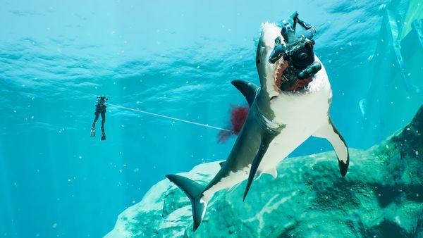 机器人S.T.E.V.E会制造一个护盾帮助潜水员躲避鲨鱼。内心最够强大的潜水员可以尝试离开护盾体会一下嗜血鲨鱼的追杀! 虽然护盾无法驱赶所有鲨鱼 - 大型的巨齿鲨会在危险海域游荡所以要时刻保持警惕!
