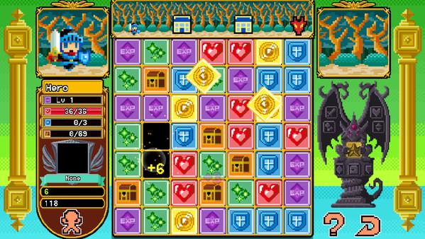 《砖块传奇DX》是一款怀旧像素风格+日式角色扮演游戏要素的消除类游戏。游戏中玩家控制的勇者将会在旅途中与各种魔兽战斗。通过消除方块的方式,勇者可以攻击敌人、获得经验值、恢复血量、捡起金币等等,这些行为的收益与你消除的方块数量有关,比如消除的剑型方块越多,敌人受到的伤害就越大。通过鼠标点击屏幕中两个相邻在一起的相同图案砖块来触发不同的能力与怪物战斗、击败BOSS、造访城镇并完成各种任务。