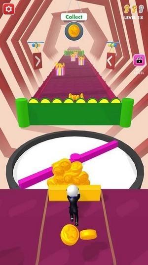 3、拉到足够多的橡皮人,并且收集路上的金币,最终获得宝藏。