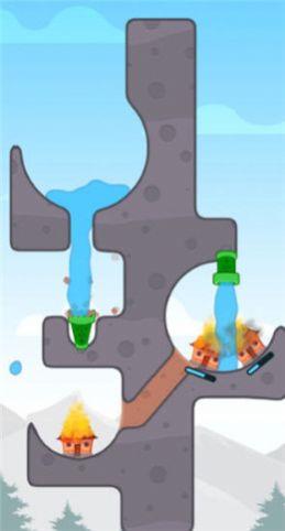 玩家需要通过不断的思考水流的路线,将游戏中为你提供的水源通过挖一道水渠引入到着火的地方,