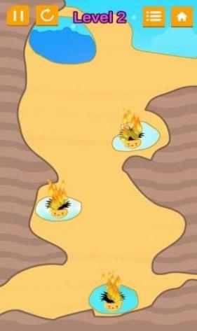让绿洲湖泊的水源成功灭火的手机游戏,非常有创意的关卡设计,