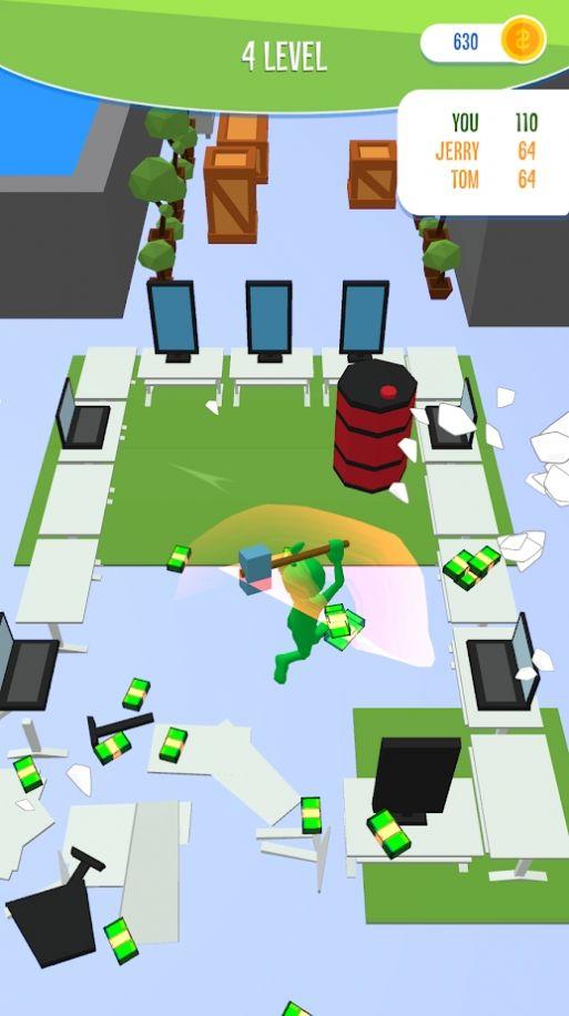 1、游戏里采用破坏性的玩法看起来十分的解压,在这里可以使用不同类型的武器来彻底破坏自己的办公室。