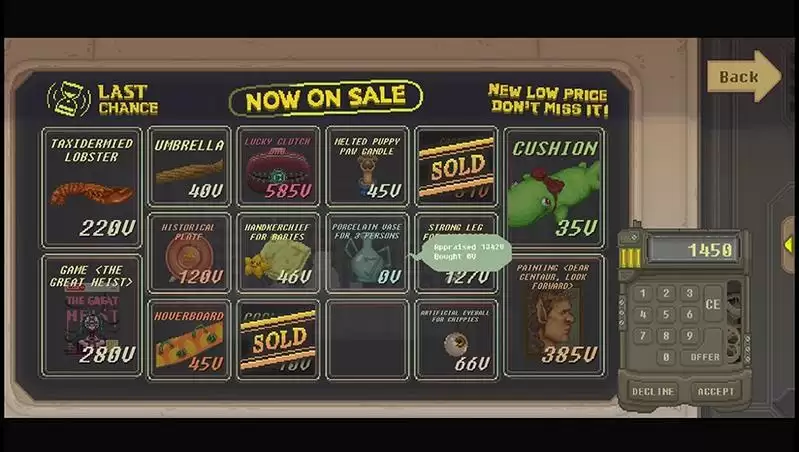 在达西的工作中,你的工作是买卖物品。当顾客试图出售他们的商品时,他们从不告诉一切。所以你必须揭示它的真正价值,挖掘它背后的东西,并调整它的买入价格。