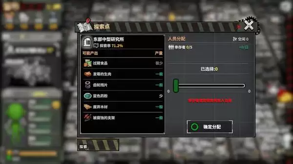 作为领袖你还需要为你营地的幸存者们分配工作:资源生产、清理营地垃圾、搜寻探索点、探索物资、研究防御塔等等。