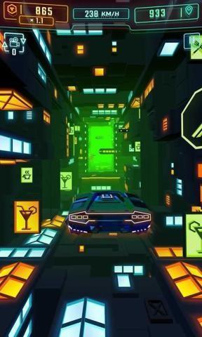 3、配合简单流畅的操控,玩家将可以在霓虹赛道上轻松操控。