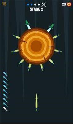 4.活动起你的手指开启一段停不要下来的手游,把关卡所需要求数量的飞刀一一扎在木桩上。