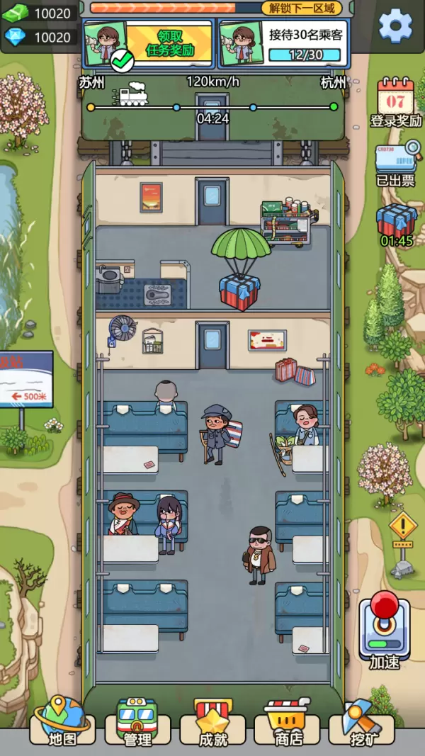 2.增加大量的线路,提高你的收益,就能解锁并且升级豪华火车;