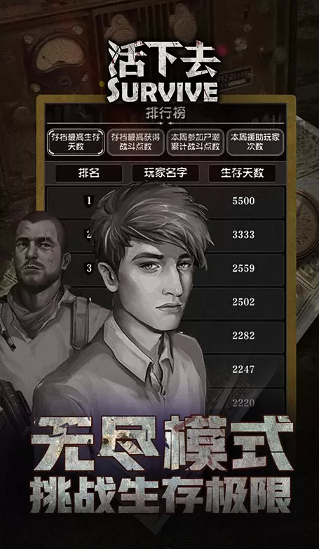 该作以手机生存游戏作为基础主题,采用文字冒险游戏方式进行,玩家的每一个抉择,都会对你之后的发展产生影响。在这个残酷的世界,你是选择泯灭良知,只为自己生存;还是选择在有能力的情况下,对他人适时伸出援手。活下去是一款非常有趣的生存冒险类手机游戏,在这里你可以在这里选择和取舍都将会对你接下来的生存之路产生影响,还会有着众多的神秘内容,等待着你来探索还在等什么呢赶紧下载吧!