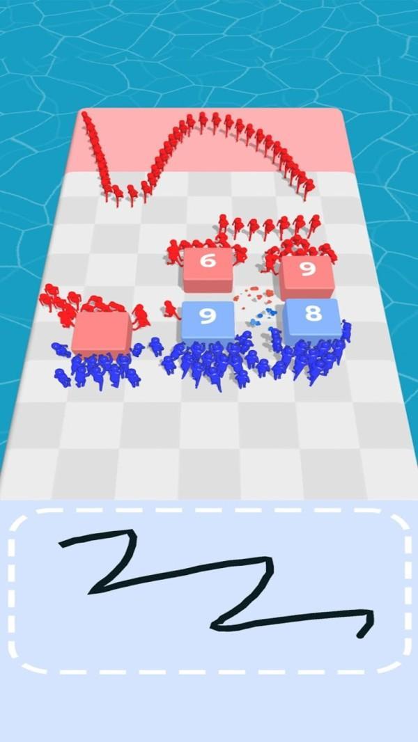 画线推推推是一款魔性趣味的人群对战策略手游,带领你的队伍和各个关卡的对手进行比赛,通过指尖绘画的方式来变化战斗队形,成功将各个方块推入敌人的区域即可取得胜利,考验玩家们的灵便应变可以力,方块的布局不要断发生着变化。