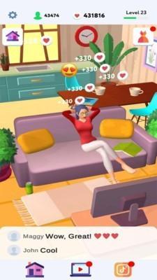 3、玩家将需要扮演一个直播网红,每日要通过直播,得到粉丝赚取,金币最后成为最红的直播达人。