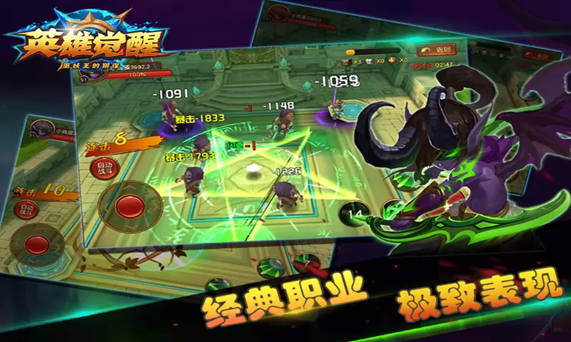 立足传统手游的优秀因素,融合现代手游的前沿理念,《英雄觉醒》的操控,是虚拟摇杆定位战场落点.攻击/技可以键操控人物出招的高端设定。