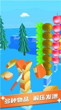 1.指尖点击屏幕,投掷水果刀切割物品。