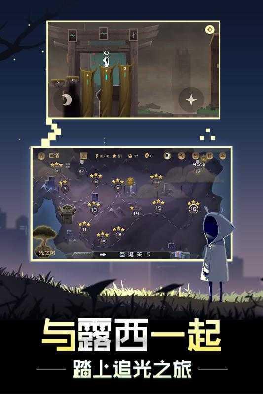 1.和追光者一起穿过各色各样的梦里情境,探寻梦里世界,为梦境巨塔找寻回失去的光芒;