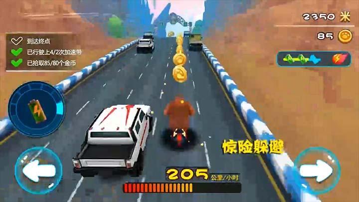 官方正版,根据《熊出没奇幻空间》大电影原版改编的一款横版赛车同名游戏。该游戏共有五位角色供玩家选择,分别是胆大勇敢的熊大、可爱善良的熊二、贪玩憨实的光头强、聪慧的小铁、美丽的纳雅。每个角色都有一款专属战车,有不同的速度、电量、氮气。玩家可以选择不同属性的角色进行挑战!游戏为无尽模式,闯关界面中前会显示关卡需要完成的三个不同任务,每完成一个任务游戏结束时会得到一颗星星。玩家通过左右按钮移动赛车变道行驶躲避障碍、完成任务、获取金币奖励等。玩法操作简单,就算游戏新手也可以在很快短时间内掌握游戏规则。玩家还可以在游戏商店内进行礼包、角色、货币、体力、道具等购买,实用的道具打包出售,优惠多多!游戏还特别设有AR互动功能,点击主界面功能按钮便可进入该界面。操作十分简单,通过支持摄像头的手机,利用手机摄像头调整好距离,在光线明亮的地方扫描物品寻找宝藏。玩家可以扫描长方形物品、正方形物品、书本、纸巾、手机等。呆萌的角色设计、精致的场景、酷炫的特效使人对赛车游戏有焕然一新的感觉!