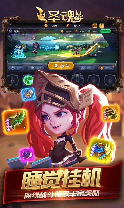 圣魂破解版内购版手游是一款以西方魔幻为背景的冒险题材放置卡牌类游戏。 在游戏中,玩家可以收集自己喜欢的英雄,对其进行升级培养,提升自己的战斗力。还可以在征战中攻击野怪、收集资源;可以与其他玩家对战;还可以加入公会,与公会其他成员共同战斗,争夺第一公会的宝座,带领你的公会走向胜利!更有神奇的宝藏和遗迹,等待玩家发掘。