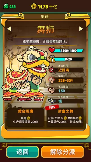 暗影尖牙帮正在隔壁道场肆虐。需要应付他们,保卫你的道场不要受攻击,全都靠你了!点击投资你的道场,让你的闲置收益不要断增长。然后不要断点击,建筑更大更好的房间,训练学生们武术与空手道,并招募武术大师助阵。不要断奋战,和其他功夫宗族竞逐,攀升排行榜,夺得 久负盛名的黑带段位,恢复道场往日荣光。