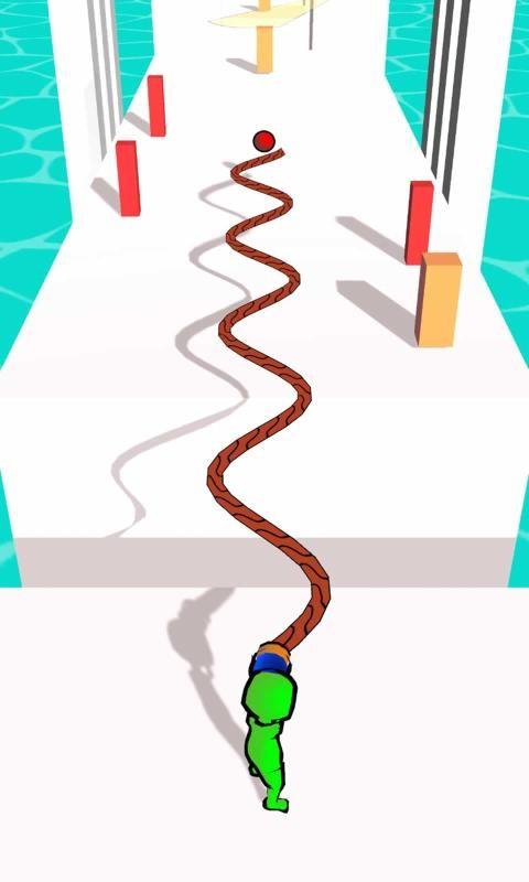 1、 滑动屏幕,操纵钩子的发射方向,准确抓住石柱,向上拉;