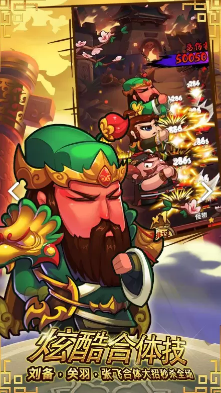 一样的经典角色,不一样的鬼畜人设!三藏,齐天大圣,猪八戒一起上阵,释放合体技“大师兄来了”,威力逆天;刘备,关羽,张飞一起上阵,释放合体技“桃园结义”,秒杀全屏!这里,武将缘分不只是数值,合体技能爽到屏碎!