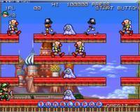 2.游戏的创意有点类似雪人兄弟,刚开始玩的朋友可能会觉得比较难打,但其实熟了之后就很简单了,游戏中的道具不是很多,主要的有加强火力的POWER和加速度的鞋子,其他的道具只在本关实用。