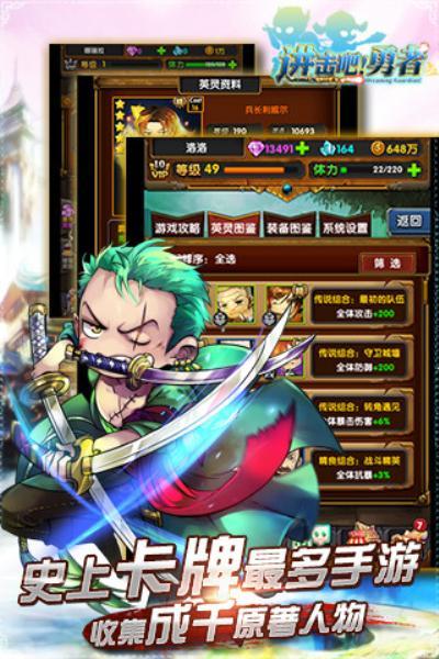 1.进击吧勇者手游,玩家能对各种职业类型的角色进行收集,卡牌模式的手游玩法,更加的考验你的手游策略,灵便的运用你当前的卡牌阵容,在这个异次元世界当里冒险吧,动感的战斗画面,绚丽的技可以特效,华丽画面无处不要在