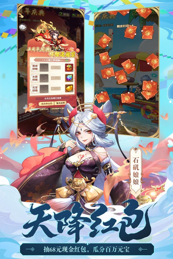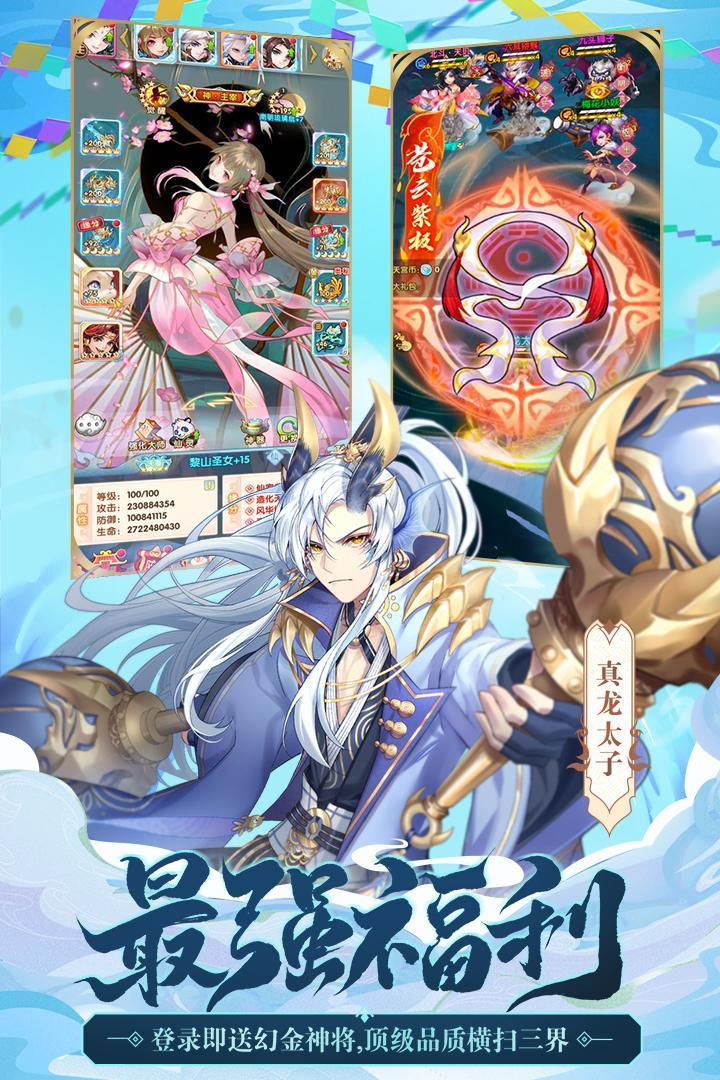 【全新版本:幻煌九天】幻金时代开启!幻金神将/法术/神兽/星君/神符陆续降世,附带全新五行属性,助力少年横扫三界!全新放置玩法“镇守花果山”上线,轻松挂机即可领取丰厚收益及幻金材料,打造幻金装备!五一狂欢节预热活动开启,海量元宝、赤金碎片、紫宝石、绝版称号珠等珍稀资源统统免费送!