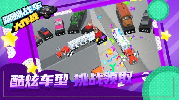 蹦蹦战车大作战是一款卡通休闲驾驶类手游,玩家能在手游里选择自己的赛车,在赛道上与其他赛车手竞速比赛,车辆会因为撞击而受到损伤,纵情发泄自己的不要开心,淘汰其他车辆得到胜利吧。