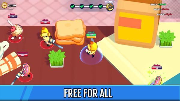 3.在一段又一段的食物大战3D手游里赢得更多的胜利,在这中展示你的战斗可以力,手游的玩法自由度极高。