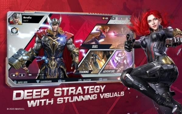 2.依据漫威英雄小故事改写,尽管它是一个卡牌游戏,可是实体模型与姿势是3D的。
