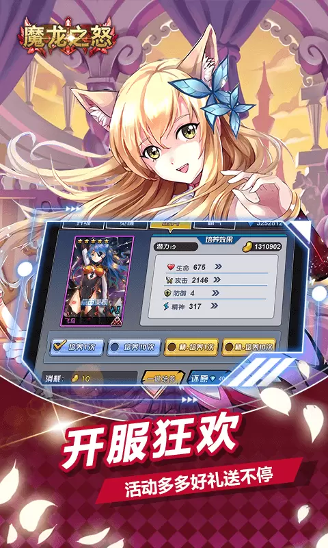 3、开服大狂欢,完成任务送海量钻石,第二天登录送炮姐,炮姐碎片、不死魔女碎片每天领取,更有各类材料、培养道具,轻松做完各种简单任务,随心兑!