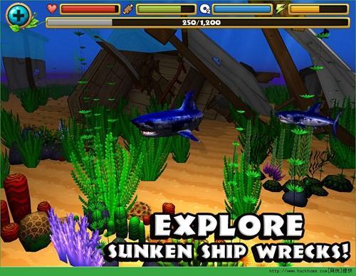 -完成多个任务,寻觅宝物取得金币和宝石,用来升级你的鲨鱼!