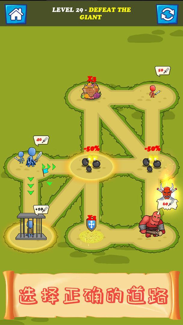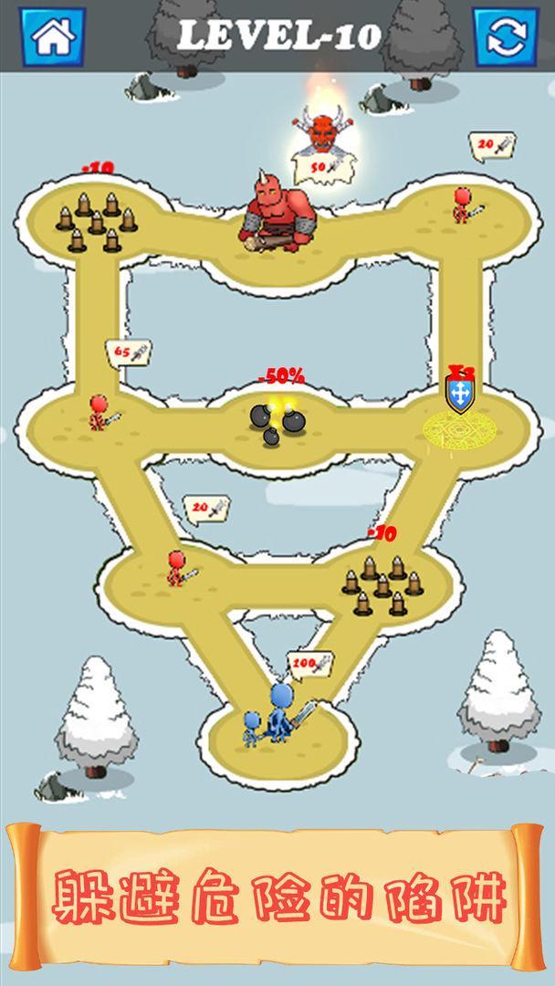 1.操作简单,每个关卡都有不要同的行径路线,发动你的脑力找到最优行进路线。