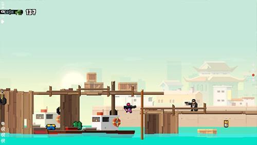1、拖动你的角色粉碎一切,拿起武器,射击并击里对手