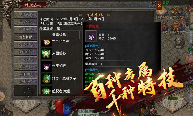 装备材料都靠打,土豪平民一起玩,大哥带小弟,得到新传奇体验。