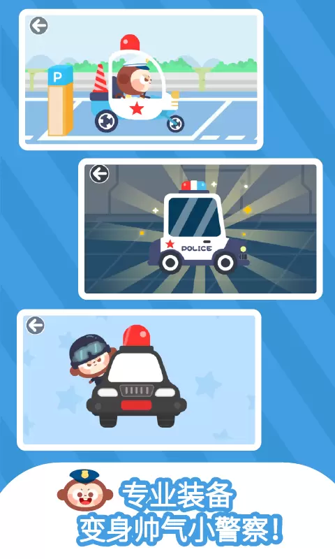 小朋友,想不想变身帅气勇敢的小警察,根据线索修正谜团,追查案件真相?想不想凭借自己的智慧和勇敢帮助有困难的人呢?快来下载安装【多多小警察】吧。儿歌多多团队精心打造,模拟真实警察局环境,配置专业装备,让小朋友可以变身帅气的小警官,驾驶警车去处理各种案件,帮助遇到困难的人。