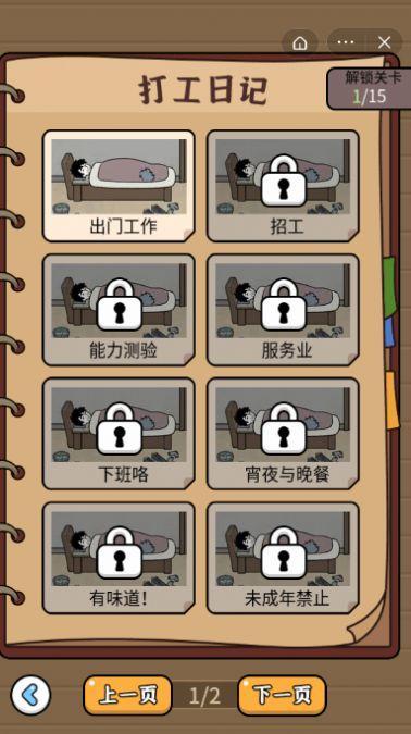 1、出门工作,招工,可以力测试,服务业,解锁一道道打工剧情,完成多项打工体验,
