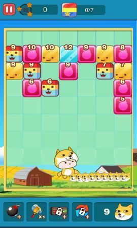 1、玩家要投掷可喜欢的方块小狗来消除更多的方块。每一关的狗的数量是有限的。