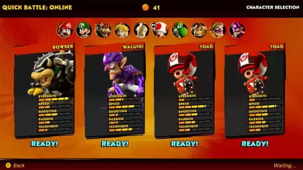 手游首发将会有10名角色登场,分别是马里奥.路易吉.桃花公主.奇诺比奥.耀西.酷霸王.罗洁塔.瓦里奥.瓦路易基与大金刚。自定义装备系统将为角色出示调整力量.速度.射门.传球.技巧的属性值。