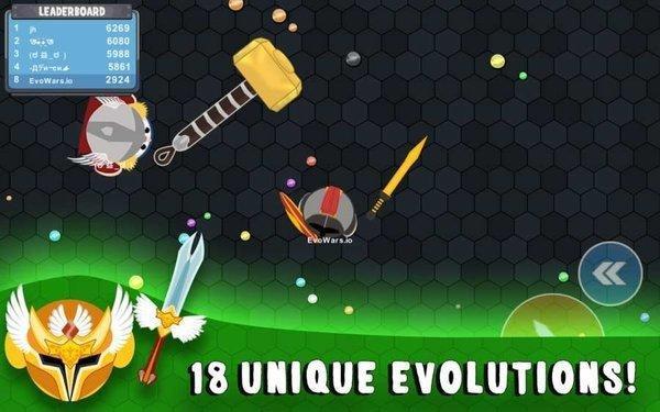 竞技场大作战玩家需要和其他玩家进行对战,操作简单易上手,玩家想办法将敌人打败或者在一旁慢慢提升积分,玩家可以在游戏中体验到不一样的竞技乱斗的游戏体验,游戏中热血的竞技中,有25个进化的目标,在格斗的过程中你身体的大小可能成为场上的目标,速度与力量不能兼得。