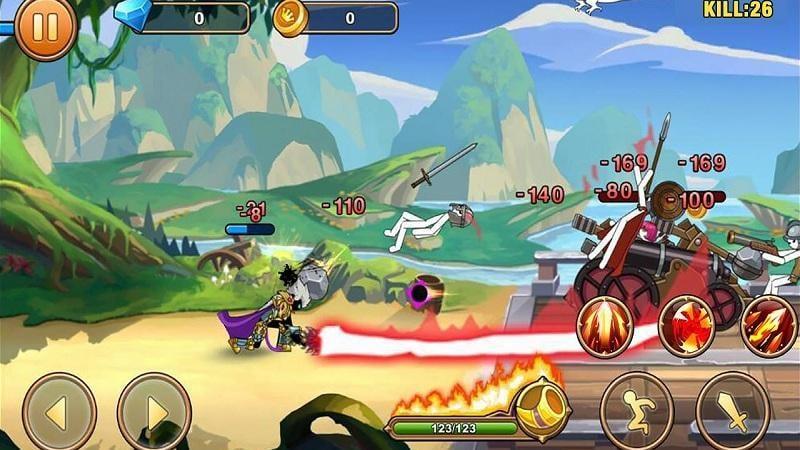这款手游整体的玩法还是比较简单的,虽然没有华丽的打斗场景但是玩家可以够体验到足够的打斗快感,卡通的画风也可以够极大程度的降低玩家的视觉疲乏感再加上丰富的关卡给玩家带来不要少乐趣。