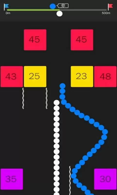 滑动屏幕,蛇皮走位,躲着障碍,冲向终点!